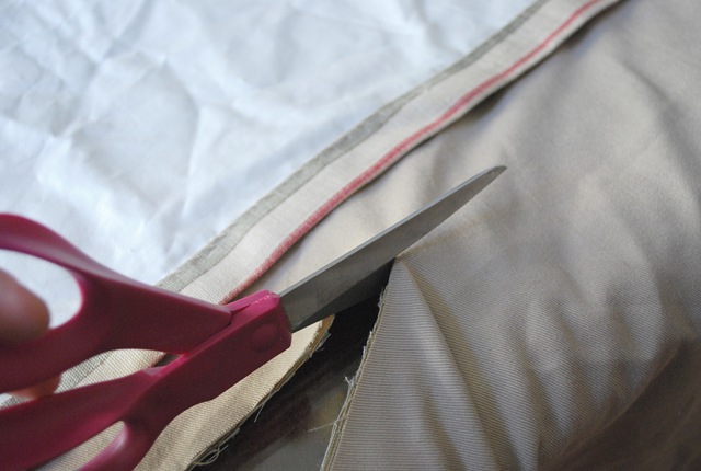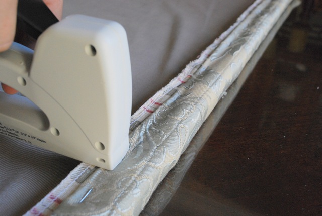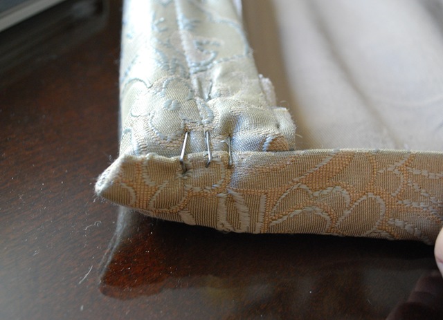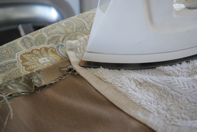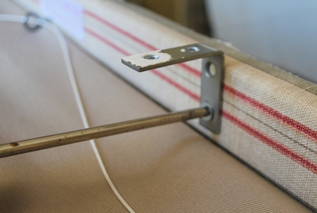 Insert dowel rod in the bottom seam of your roman shade.  Mine was a metal rod leftover from the previously constructed shade, but a wood dowel rod will work just fine.