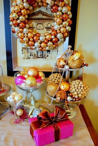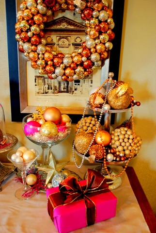 See this cruddy picture of my holiday sideboard taken in the evening?  It has far too many warm tones in my book, but its completely salvageable.