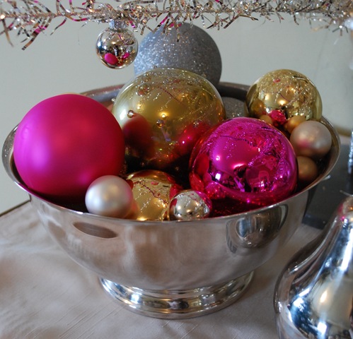 You are so good at this…could I just say for a moment…you make me sick!! Not really, you inspire me. I would never think to hang a wreath on a picture, but I like it. I love silver and gold together…have a tablescape set up now with those colors. I love the hot pink touch, I’ve done it with royal blue…never the pink. Everything is simply stunning!
