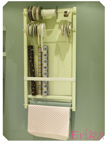 Check out Erika’s craft station, inspired by this gift wrap organizer.