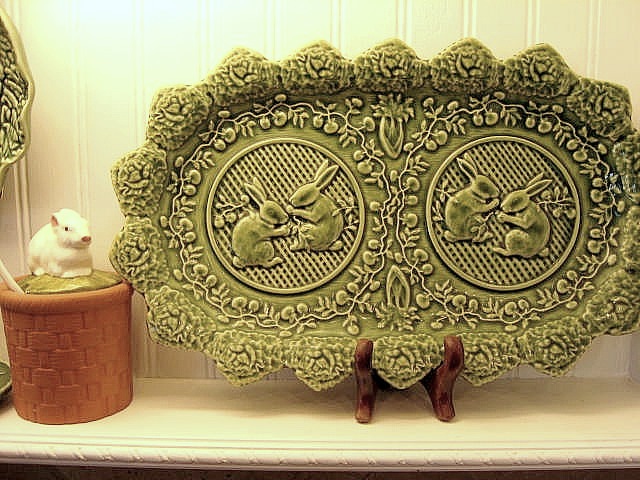 Several years ago, I began a collection of Bordallo pottery and these bunny dishes caught my eye. First, I love bunnies and this soft green was the perfect complement to them, so there started my collection, which keeps growing yearly. This shade of green is very soothing to me.