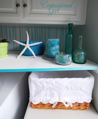 LOVE your makeover! And the basket for “Lonely Socks,” so cute! I’m working on a laundry room re-do right now. I may borrow a couple of your ideas!