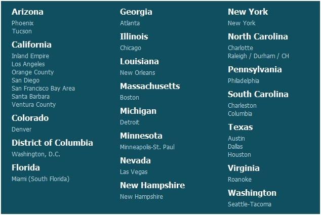 Right now we are in 31 cities in 20 states, in the next 12 months we will expand to 224 cities across the country. In addition, we are working on opening up some cities in Canada very soon. One of the "decision tools" we use for deciding which city to open next is the "suggest a city" button on our front page. Last month we received more than 600 new city requests.