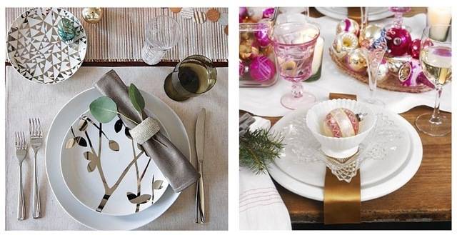 Add a simple colored napkin folded beautifully or tied with a festive napkin ring, plus some simple decorative elements and you have a perfect holiday place setting.