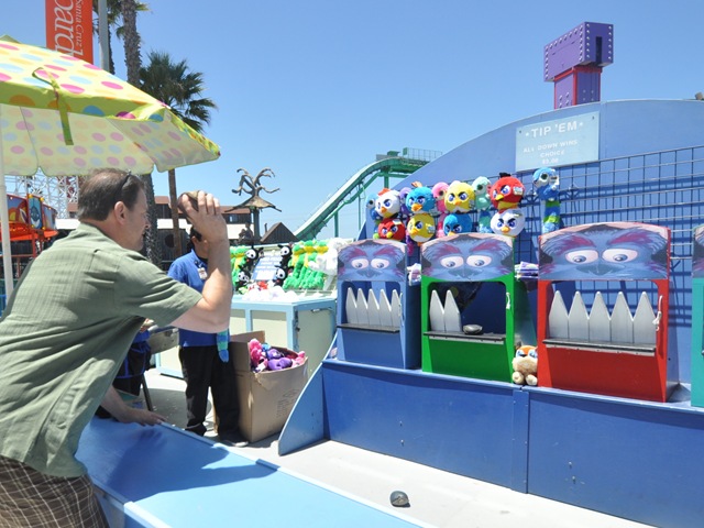 Mr. CG dropped twenty bucks trying to win one of those Angry Birds worth 25 cents.  What is it with dudes and amusement parks?  We never did get one.  I’m glad he never did, because of course you always need two.  Two kids, two prizes or it’s munchkin meltdown.   We appeased them with rainbow slushies instead.