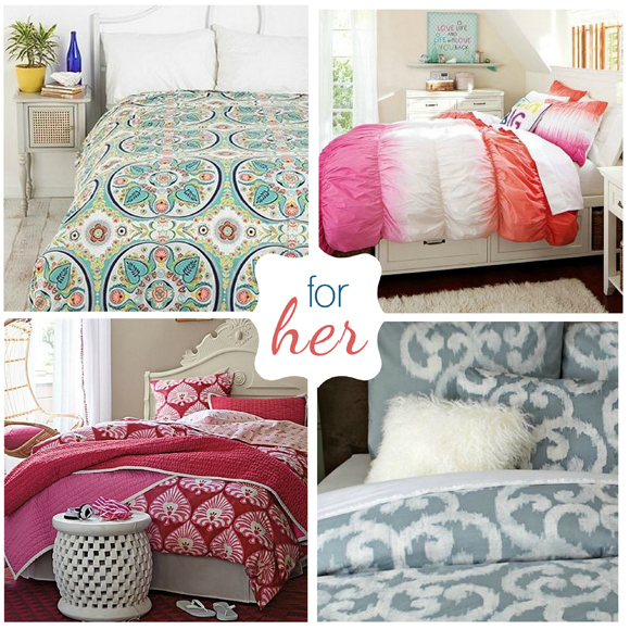 If the student is staying in a dorm room, they’re usually very tiny. The bed is the largest piece of furniture, and is where *everyone* will sit. Plan on a bedspread that’s cute, but not too delicate, and can be washed. They really take a beating!