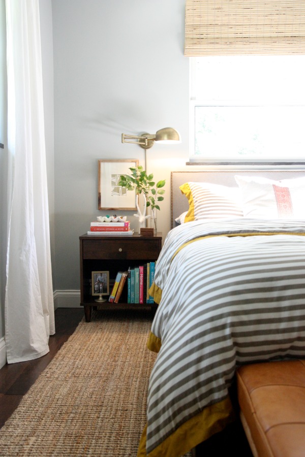 “If I were on staycation at home, you would probably find me in my bedroom. With swing arm wall lamps, an upholstered headboard and a nightstand full of design books, my bed is the perfect place to relax and read. Add live greenery and a glass of wine and it’s a bona fide vacation to me!”
