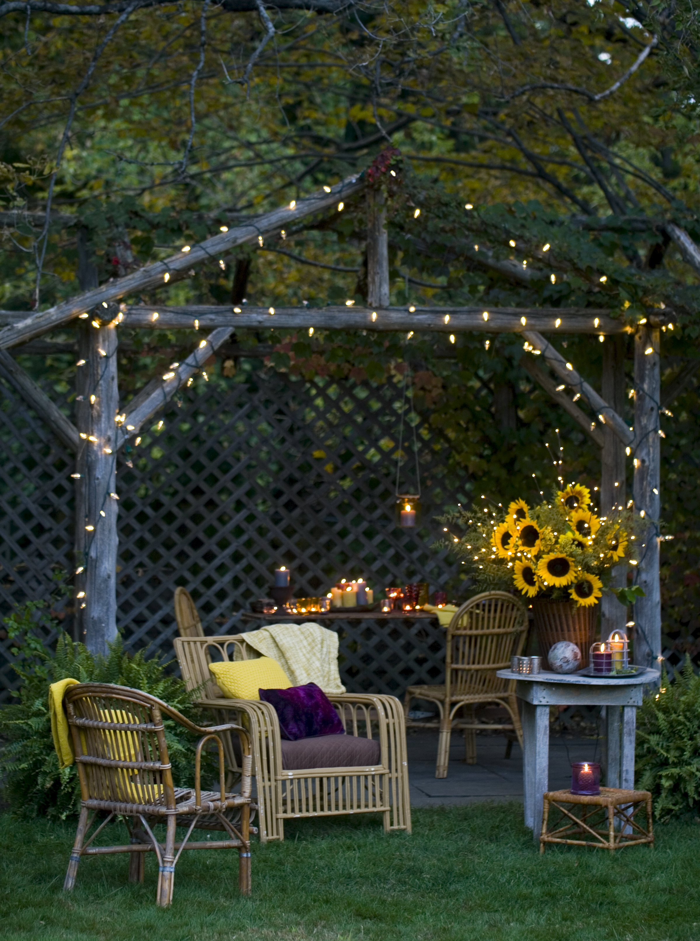 “Engage your backyard and make it magical for entertaining and relaxing. Corral vintage bamboo furniture, candles in colorful vintage glass, cozy pillows and white lights to hang from trees, decks and pergolas. I love evening in my backyard with a few simple decorations, candle light and lots of refreshing drinks to entertain my guests and enjoy a long summer evening.”