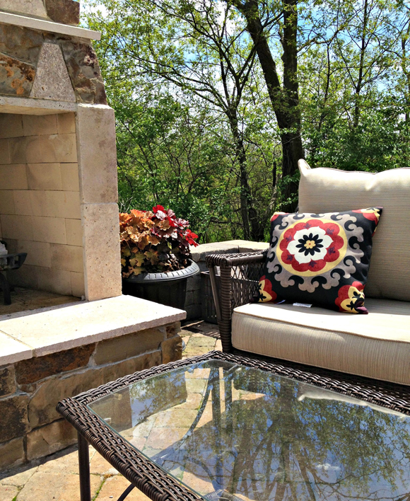 Where do Matt and I hang out during the summer months? Most evenings, you can catch us sipping Chardonnay in our courtyard just off the kitchen. A vintage iron sofa and chair found at an antique faire years ago covered with DIY cushions and pillows makes our summer nights at home casual and cozy.