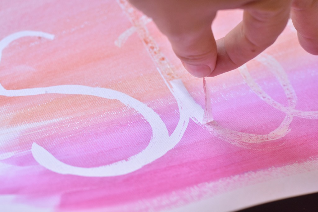 This seems like a perfect way to get young children involved. Use frisket to paint a saying on it, maybe even one the child chose. Then let them paint all over the paper, encouraging them to cover the entire paper, and let/help them peel the frisket off. Even a two-year-old can end up with a really nice piece.