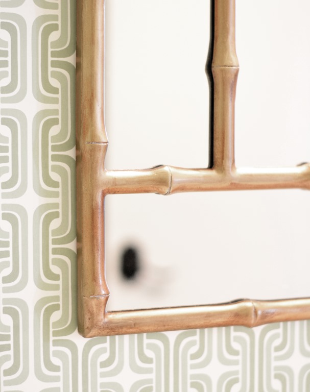 Love the mosaic graphic pattern. Perfect scale for the vanity backsplash. You will have to tell us where the gorgeous gold chinoiserie mirror is from!