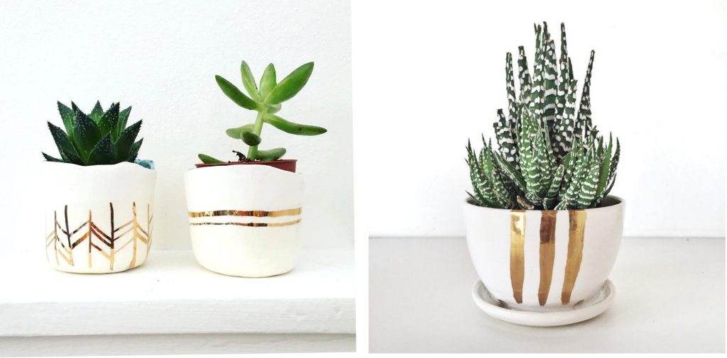 I never get tired of gold and white together. And you can never have too many little plants scattered around the house! Loving the planters in Marissa Grana and Avisha Michael’s shop. Imperfect gold stripes are my jam.