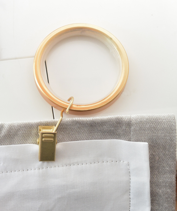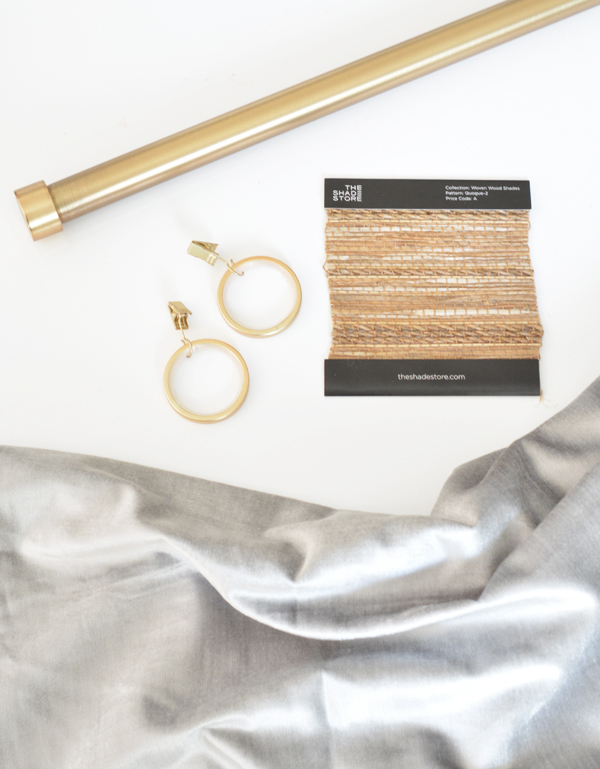 For my fabric panels that layer on top of these shades, I found DKNY pale gray cotton velvet panels at HomeGoods to hang on brass rods and rings. (I’ll share sources next week). The final window treatments for the bedroom will include the new woven shades from The Shade Store with the cotton velvet panels layered on top.