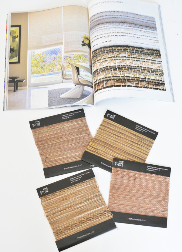The process of choosing the material for woven shades was easy, I ordered four free samples in the colorway I wanted and they arrived from the Shade Store in just a few days with a lovely catalog to browse.